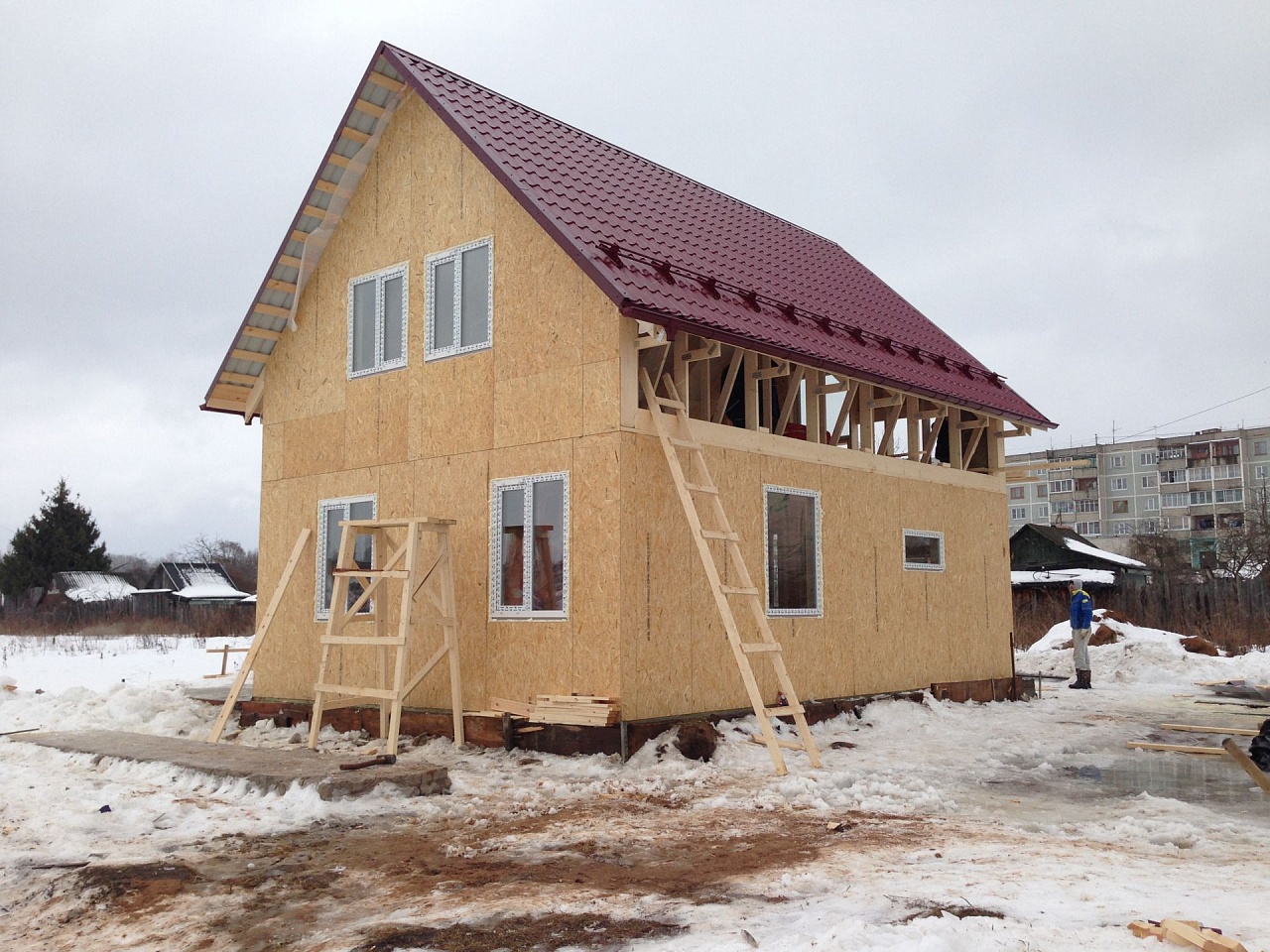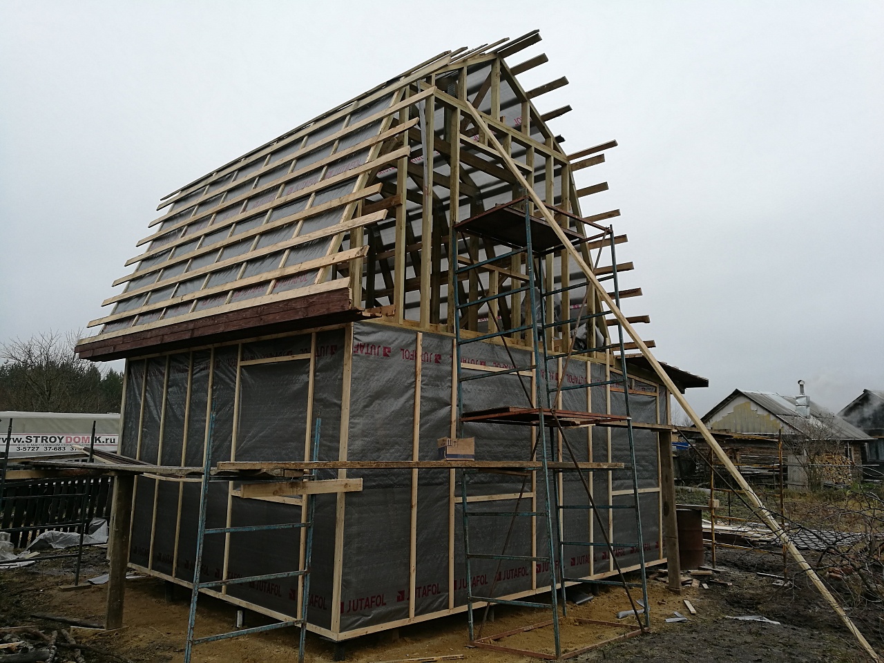 • Установка системы стропил
